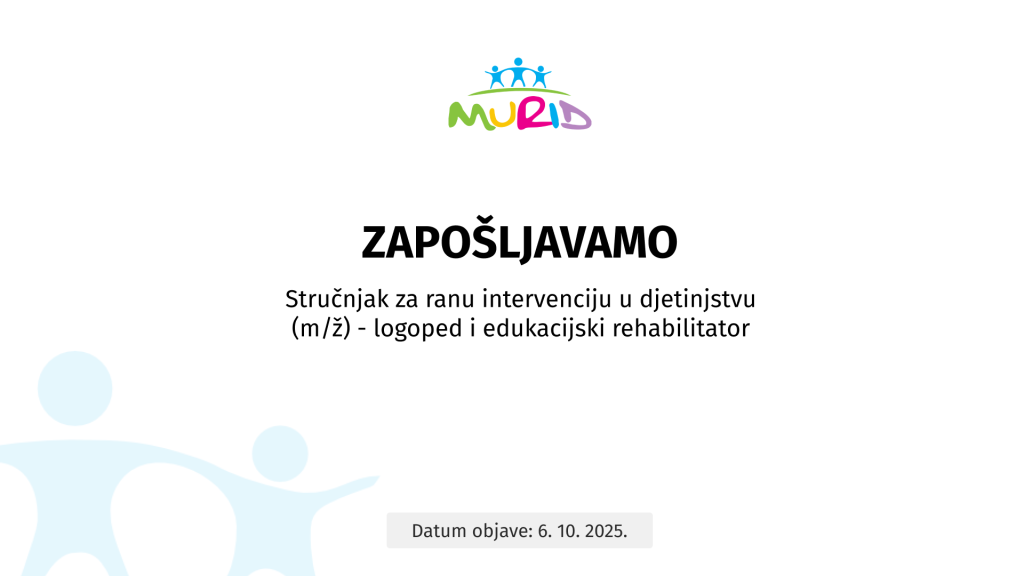 Ako ste nedavno završili fakultet iz logopedije ili edukacijske rehabilitacije i želite započeti svoju karijeru razvijajući sustav rane intervencije u djetnjstvu, MURID je pravo mjesto za vas!